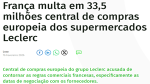 França multa em 33,5 milhões central de compras europeia dos supermercados Leclerc