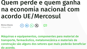 Quem perde e quem ganha na economia nacional com acordo UE/Mercosul